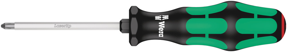 Handle:Kraftform with non-roll feature, multi-component. Take it easy tool finder: colour coding according to profile (red = Phillips) and size stamp.